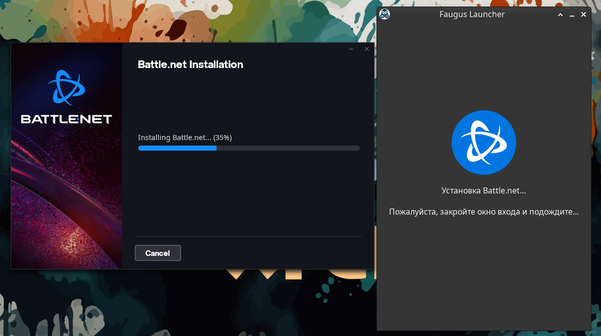 Battle.Net устанавливается быстро и без лишних запросов. Программа автоматически скачивает и устанавливает Proton, если он еще не установлен: